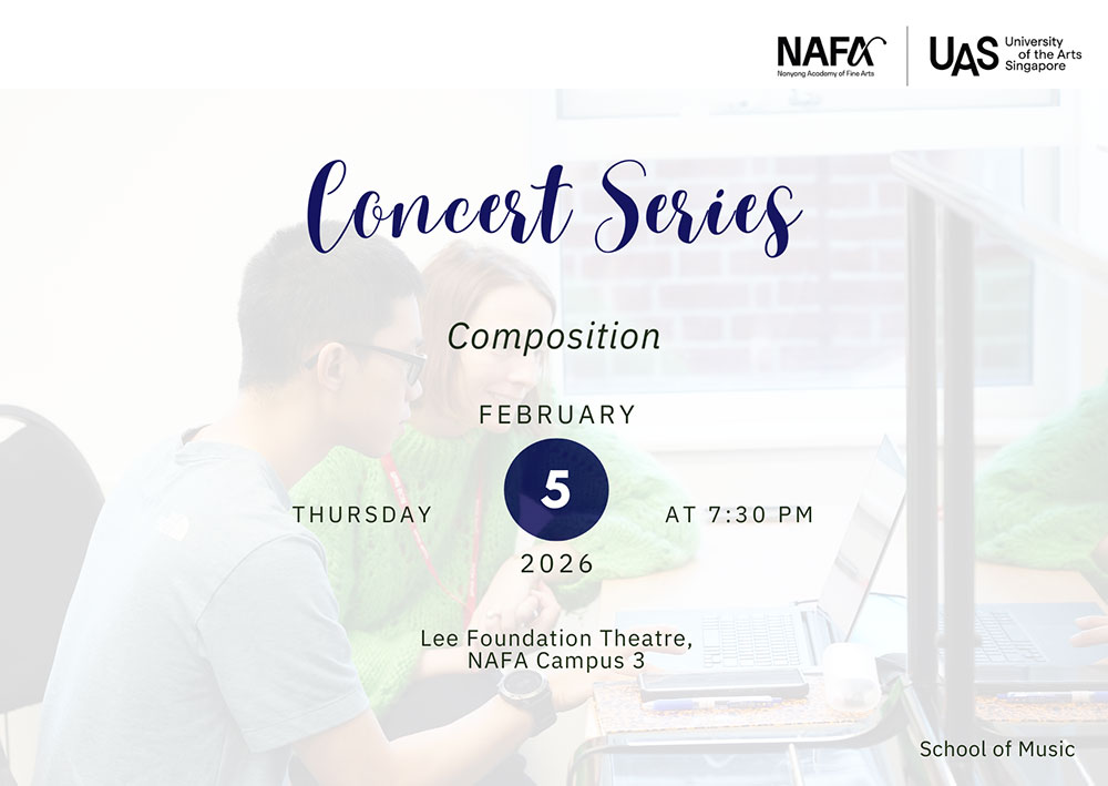 The Composers’ Concert Series at the Nanyang Academy of Fine Arts (NAFA), University of the Arts Singapore (UAS) is curated by the School of Music to showcase original works by student and faculty composers.