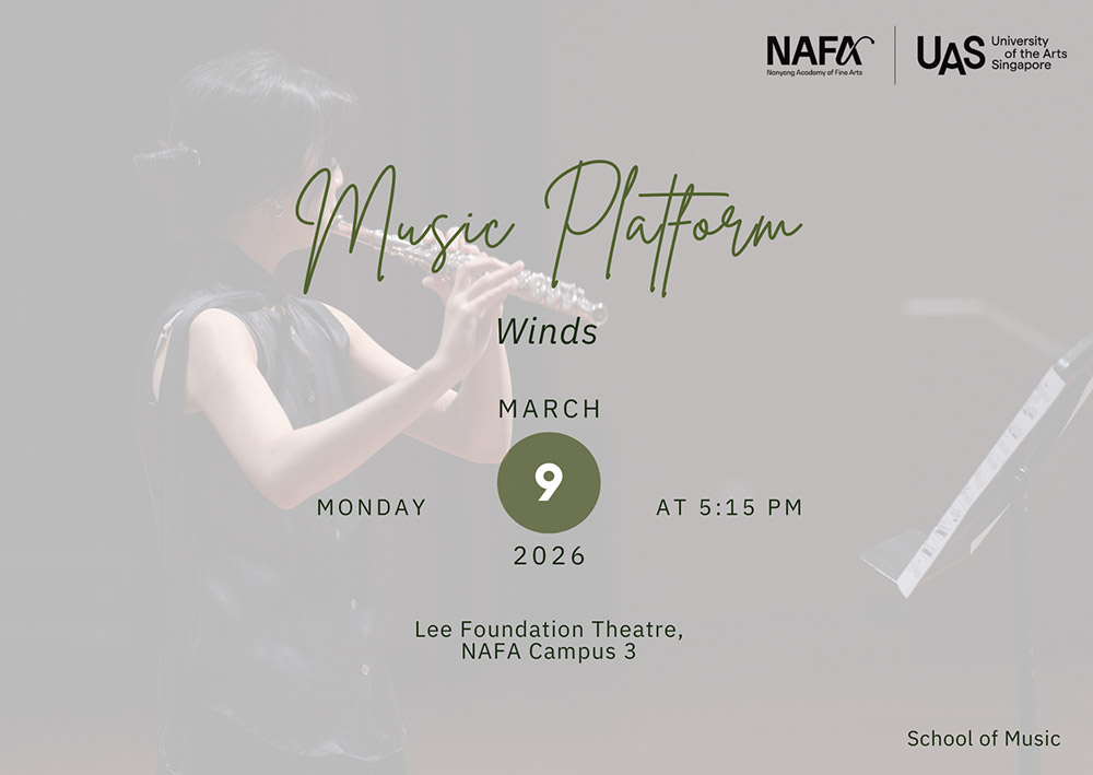 Music Platforms at the Nanyang Academy of Fine Arts (NAFA), University of the Arts Singapore (UAS) are student-centred performance initiatives organised by the School of Music to support artistic development through regular live performance.