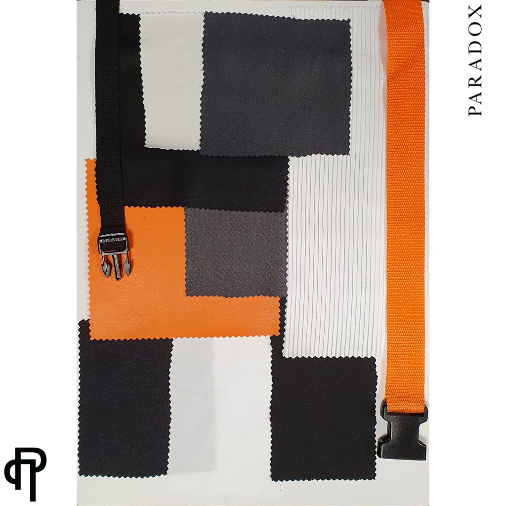 This board showcases the fabrics used for dauntless collection. (TR- Gabardine, TR-Italian suit, Cotton, PVC Leather, and Duchess Satin)