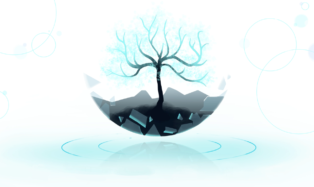 The end scene of the first level of the game, where flowers bloom and the whole colour scheme brightens
